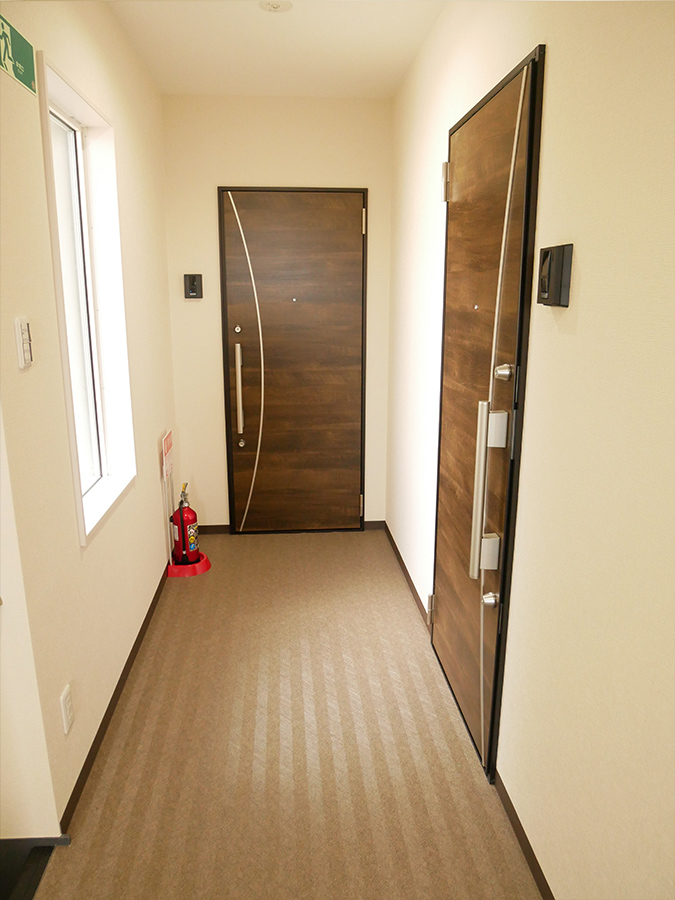 自動ドアオートロック、防犯カメラ、中廊下タイプで宅急便は玄関の前に置配可能!女性にオススメの新築アパートです!