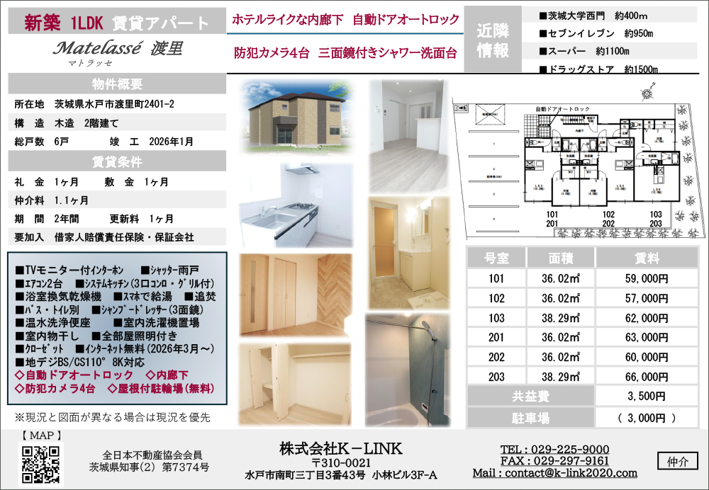 茨城大学近くで住まいをお探しのみなさんにおすすめの新築賃貸物件【Matelassé(マトラッセ)渡里】をご紹介!